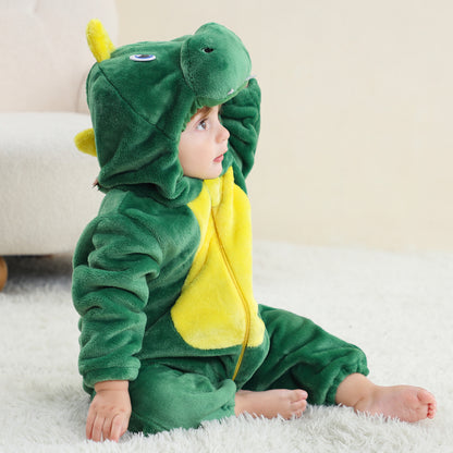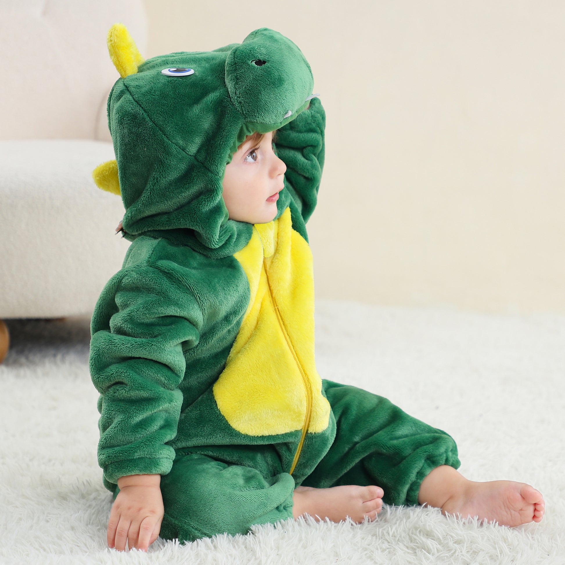 Let your little cub stomp into adventure in our adorable Green Dinosaur Onesie! Made from the softest, breathable, and most durable fabrics, this onesie is perfect for everyday adventures or cosy snuggles. Featuring a playful dinosaur face on the hood, complete with tiny spikes and a roaring expression, and a zipper for easy dressing, it's both fun and functional. The footless design allows for maximum movement, making it ideal for growing babies and toddlers. Whether it's a prehistoric daytime outfit or a comfy pyjama, your little one will love roaring around in this adorable onesie!